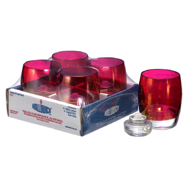 The Hollowick 6404R-4 Cash & Carry Contour™ Votive is a carefully crafted glass votive, measuring 3-3/4" in height and 3" in diameter. This sophisticated piece is designed for use with HD12 Liquid Votive™ fuel cells, enhancing both functionality and aesthetic appeal. It features a striking ruby lustre finish, adding a touch of elegance to any setting. Packaged with four pieces per pack, this votive is ideal for settings ranging from intimate dining experiences to larger events, accommodating various market segments within the hospitality industry. The Hollowick 6404R-4 is particularly suited for restaurants, hotels, and event venues seeking to create a warm and inviting atmosphere. Its compatibility with liquid fuel cells ensures a clean, long-lasting burn, making it not only an appealing choice aesthetically but also practical and efficient. Whether for ambient lighting on a dining table or as a decorative element in event planning, this votive's blend of form and function makes it a valuable addition to any setting, especially where quality and style are paramount considerations.