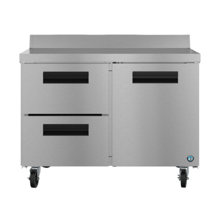 Hoshizaki, WF48B-D2, Steelheart Series Worktop Freezer, reach-in, two-section, 48"W, 12 cu. ft., self-contained rear mounted refrigeration system, (1) reversible solid hinged door, (2) stainless steel drawers, stainless steel interior, stainless steel exterior front, sides & top, (4) 6" casters casters (two with brakes), hot gas condensate removal, R290 Hydrocarbon refrigerant, 1/3 HP, cord, NEMA 5-15P, cETLus, ETL-Sanitation