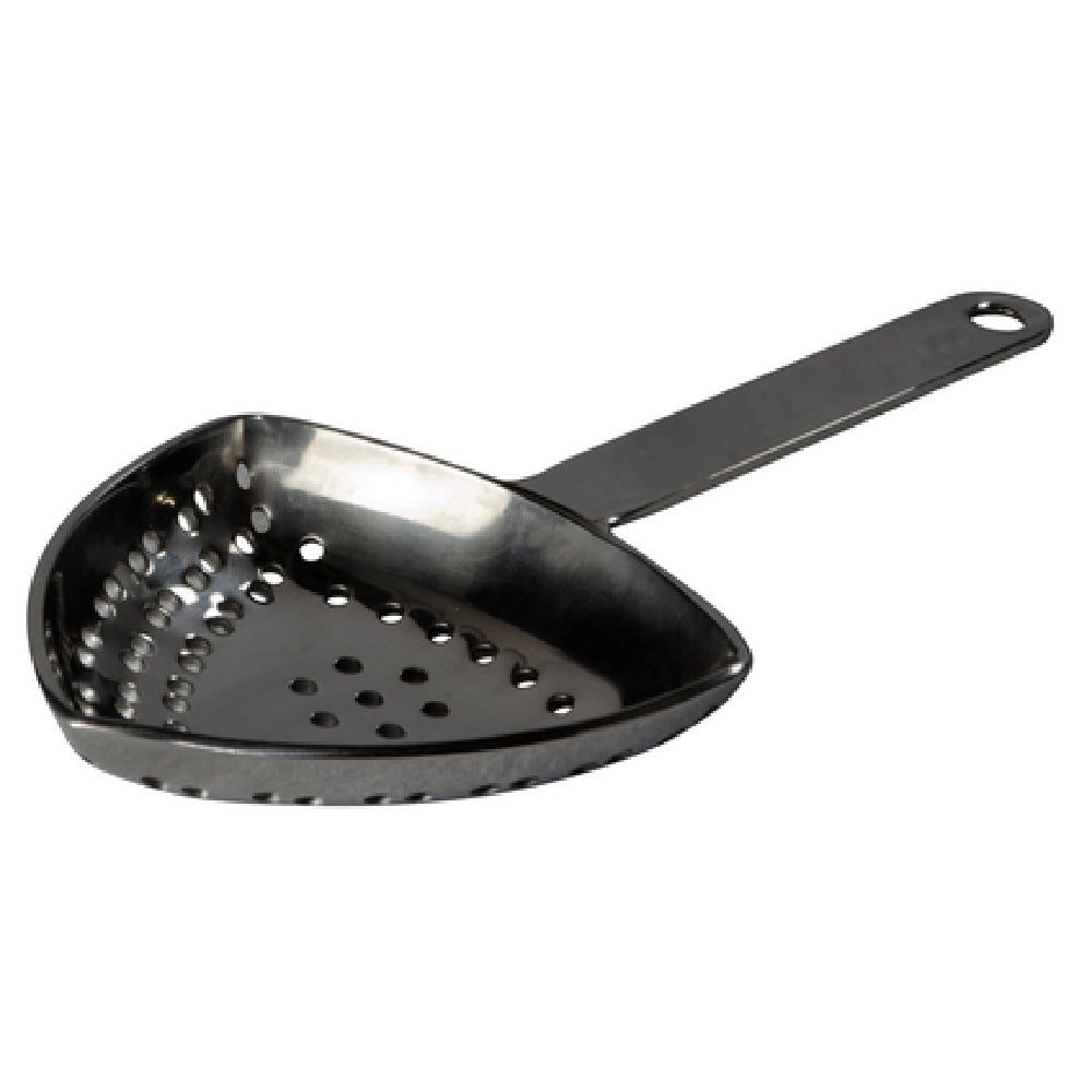 The Hospitality Brands HB46-JULEP-PB-006 Uber Bar Tools™ Cocktail Essentials Juliep™ Strainer is a specialized tool crafted for precise cocktail crafting and is a must-have for professional bartenders. This strainer is designed with a unique triangular shape, providing versatility in its dual-purpose functionality, making it suitable for both simple and complex cocktail preparations. Constructed from high-quality stainless steel, it guarantees durability and resistance to rust, ensuring long-lasting performance in high-demand environments. The strainer is finished in a sleek black color, adding a touch of elegance to any bar setting. Each case contains six of these premium strainers, packed for convenience and efficiency in high-volume operations. The HB46-JULEP-PB-006 model is particularly appealing to upscale bars and hospitality establishments, where both aesthetic appeal and performance are crucial. Its design not only enhances the visual appeal of the bar but also improves the efficiency of the cocktail-making process. This product serves as an essential tool for mixologists who require precision and reliability in their bar tools, making it a valuable addition to any professional bar setup.