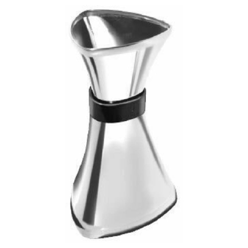 The Hospitality Brands HB46/PROMEGJIG-L-012 Uber Bar Tools™ Cocktail Essentials ProMegJig™ is a precision-engineered tool specifically designed for the professional bar setting and mixology enthusiasts. This state-of-the-art jigger features a dual measurement capacity of 1 oz. and 2 oz., offering versatility for precise cocktail crafting. The device is distinguished by its unique triangular shape and an angled jigger head, enhancing ergonomic efficiency and pour accuracy. Its Flat Pour™ design further ensures seamless liquid transfer, minimizing spillage and maintaining a clean serving area. Constructed from high-quality stainless steel, the ProMegJig™ guarantees durability and a sleek, polished chrome finish, which not only contributes to its aesthetic appeal but also ensures resistance to corrosion and wear in high-volume, fast-paced bar environments. Packaged twelve per case, this product is ideal for establishments requiring multiple units, such as bars, lounges, and event venues. The Hospitality Brands HB46/PROMEGJIG-L-012 is crafted to meet the rigorous demands of industry professionals, while also providing a touch of sophistication and reliable functionality to any cocktail preparation task.