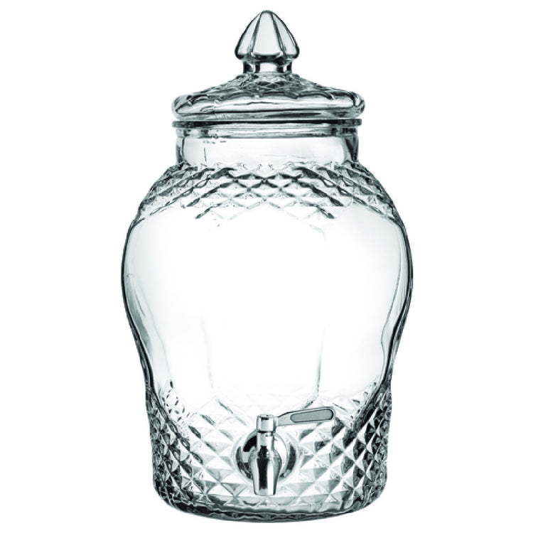 The Hospitality Brands HG90034-001 Legend Glassware Nomad Beverage Dispenser is a premium glass dispenser with a substantial capacity of 6 liters, making it an excellent choice for various segments within the hospitality industry, such as hotels, restaurants, and event catering. Crafted from clear glass, this dispenser not only offers a durable serving solution but also showcases the beverages in an aesthetically pleasing manner. Each unit is packaged individually per case, ensuring safe transport and storage. The design of the Nomad Beverage Dispenser emphasizes both form and function, providing an elegant display while maintaining the practical benefits of a large-capacity server. Its clear glass construction allows for easy monitoring of the drink levels, adding convenience for high-traffic environments. This product's versatility and high-quality build meet the needs of hospitality professionals who require reliable and visually appealing beverage service solutions. With its combination of durability, capacity, and visual appeal, the HG90034-001 Legend Glassware Nomad Beverage Dispenser is a valuable addition for establishments aiming to enhance their beverage presentation and service efficiency.