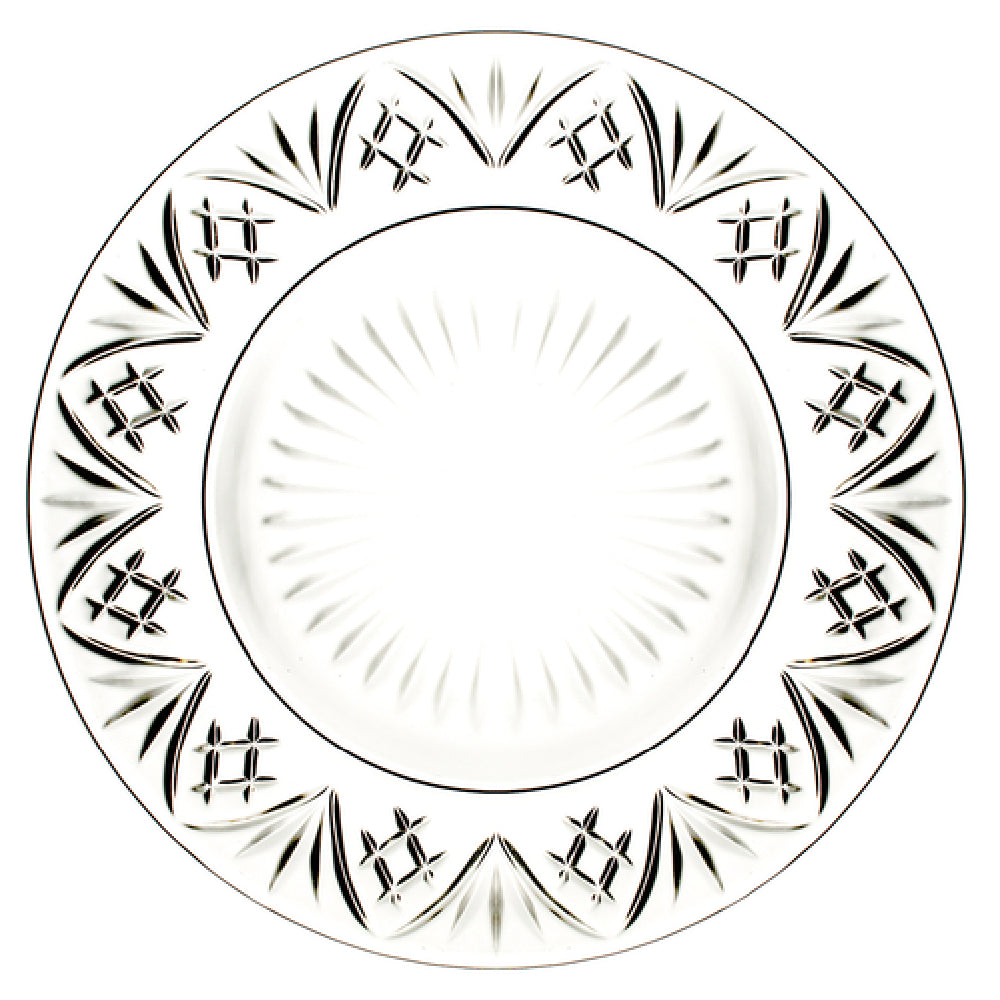 The Hospitality Brands Majesty Dinner Plate 10.5" is an exceptional addition to any dining setting, catering to a wide range of market segments within the hospitality industry. This round dinner plate, identified by the model number HGS25466-016, is crafted from premium glass, ensuring both elegance and durability. The design embodies a balance of refinement and practicality, making it suitable for upscale dining establishments and casual settings alike. Each case contains 16 of these exquisite plates, providing ample supply for high-volume service environments such as hotels, restaurants, or catering events. The 10.5-inch diameter of the Majesty Dinner Plate offers a generous surface area, perfect for presenting a variety of culinary creations with style. The high-quality glass construction not only enhances the visual appeal but also assures long-lasting performance under frequent use. This product's thoughtful design caters to the diverse needs of the hospitality industry, making it a versatile choice for professionals seeking to elevate the dining experience with a touch of majesty and sophistication. Whether for a fine dining restaurant or a bustling banquet hall, the Hospitality Brands Majesty Dinner Plate 10.5" stands out as a symbol of quality and elegance.