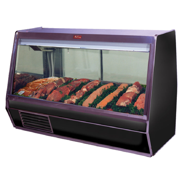 The Howard-McCray SC-CMS32E-6-BE-LED Red Meat Service Case is a 74-inch-wide single duty unit, expertly designed for the effective display and preservation of red meat products. This model boasts an endless design coupled with self-contained refrigeration, ensuring optimal storage conditions. It features a full-length gravity coil system alongside an additional extra full-length humidity coil at the main deck, providing superior temperature and humidity control to maintain the quality of meat products. The exterior is elegantly finished in black while the interior is white, optimizing visibility and aesthetics. The service case is illuminated by energy-efficient LED lighting, enhancing product presentation. Powered by a 1/4 HP motor, it operates on a 115v/60/1-ph electrical system with a 12.0-amp requirement, making it a reliable and efficient choice for high-demand environments. The stainless steel top ensures durability and ease of cleaning. The Howard-McCray service case is classified under cULus, UL EPH, and UL-Sanitation standards, affirming its compliance with rigorous health and safety regulations. This case is ideal for supermarkets, butcher shops, and specialty meat stores that require a robust and visually appealing display solution. Its technical specifications and versatile design make it a valuable addition to any food retail establishment.