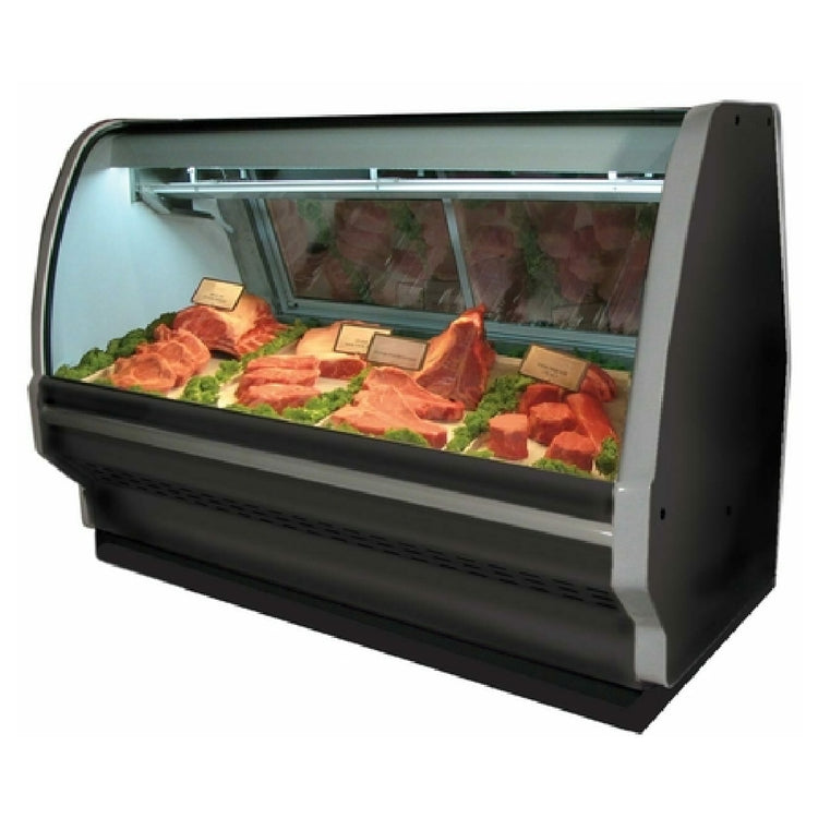 The Howard-McCray SC-CMS40E-4C-BE-LED Red Meat Service Case - 51.5"W - Single Duty is designed to enhance the presentation and preservation of red meats for various market segments, including butchers, supermarkets, and specialty meat shops. Its endless design and double bend curved glass offer exceptional visibility, allowing customers to view products easily while maintaining optimal freshness. This service case features a self-contained refrigeration system powered by a 1/4 HP motor, running on 115v and 12.0 amps, ensuring reliable cooling performance. The full-length gravity coil system, complemented by an extra full-length humidity coil at the main deck, provides superior temperature and humidity control to preserve meat quality. Constructed with a robust stainless steel top for durability and a visually appealing black exterior with a white interior, this unit meets the aesthetic demands of modern retail environments. The Howard-McCray service case is cULus, UL EPH Classified, and UL-Sanitation certified, ensuring adherence to stringent safety and sanitation standards. At 51.5 inches wide, this case is compact yet spacious enough to meet the display needs of various commercial settings, offering a reliable and efficient solution for showcasing and maintaining the quality of your meat products.