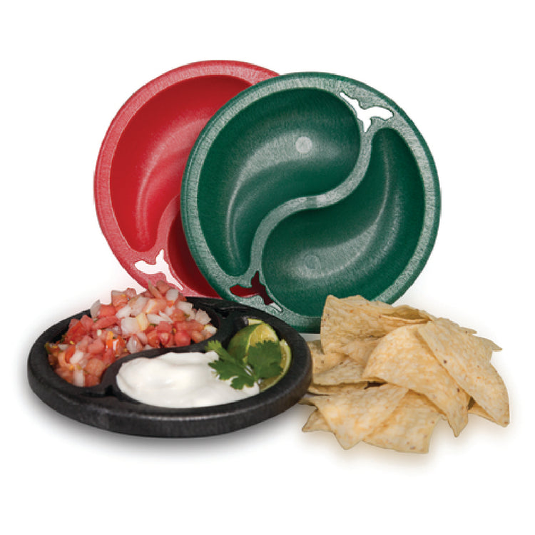 The HS Inc HS1070-CH Chile Doble is a versatile and practical solution for diverse food service environments, measuring 6 inches in diameter and 1 inch deep. This round serving dish is designed with two distinct 4-1/2 oz. compartments that facilitate convenient and organized food presentation. Crafted from durable polypropylene, the HS1070-CH is both microwavable and dishwasher safe, ensuring ease of use and maintenance in any busy kitchen. Its charcoal color offers a sleek and modern aesthetic that complements a variety of table settings. Delivered in a case of 24 units, this product is well-suited for large-scale operations, from restaurants to catering services, that require efficiency and reliability in their serveware. Its thoughtful design supports diverse culinary applications, making it an ideal choice for businesses looking to enhance their dining experience with quality and practicality. The HS1070-CH Chile Doble stands out in the industry for its functional dual-compartment feature, offering unique value by facilitating portion control and diverse menu presentations while maintaining ease of cleaning and handling. This product embodies efficient design, ideal for enhancing operational workflow and guest satisfaction in the food service industry.