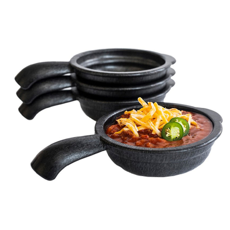 The HS Inc HS1074-CH Serving Bowl is a meticulously designed kitchen essential, perfect for food service operations seeking practicality and efficiency. With a 12-ounce capacity, this round serving bowl offers ample space for a variety of dishes, making it versatile for different culinary needs. Its dimensions feature a 5-inch inside diameter and 1-5/8 inches in depth, providing a compact yet substantial serving option. The bowl's design includes a convenient handle, enhancing ease of use and transport in busy settings, whether in catering environments or casual dining. This serving bowl is crafted from durable polypropylene, ensuring a lightweight yet sturdy construction that stands up to the demands of frequent use. For added convenience, the bowl is both microwaveable and dishwasher safe, streamlining kitchen operations by allowing quick reheating and easy cleaning. Its stackable nature aids in space-saving storage, a crucial feature for businesses with limited space. Available in an elegant charcoal color, the HS Inc HS1074-CH Serving Bowl is sold in quantities of 24 per case, catering efficiently to large-scale food service requirements. This bowl represents a reliable choice for restaurants, cafeterias, and catering companies looking for durable, versatile, and space-efficient serving solutions.