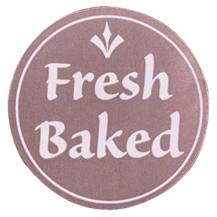 Hubert Company LLC, 36656, Food Information Label, "Fresh Baked", 1-1/2" dia., round, paper, white imprinted, brown background (500 each per roll)