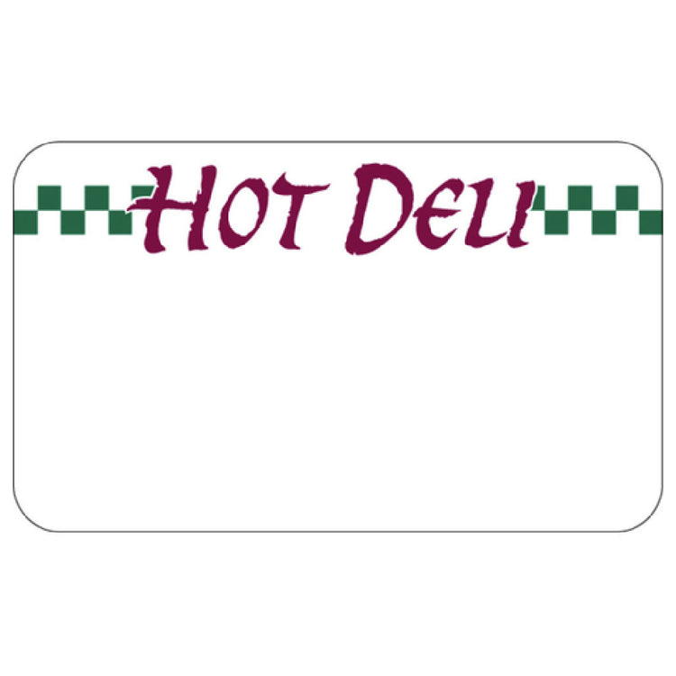 Hubert Company LLC, 41862, Merchandising Tag, "Hot Deli" with green checkered design, 3-3/4" x 2-1/4"H, rectangular, write-on/wipe-off, temperature range: 10° to 225°F, 360 flex temp vinyl, green/purple imprinted, white background (12 each per bag)