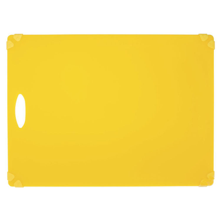 Hubert Company LLC, 42627, Cutting Board, 24" x 18" x 1/2"H, rectangular, embossed ruler (measures cm/in), corner grippers, cutout handle, dishwasher safe, polypropylene, yellow, NSF