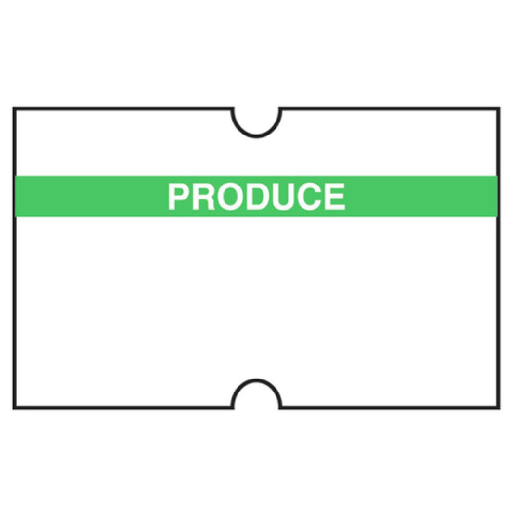 Hubert Company LLC, 42775, Label, "Produce", for 1-line Pricing Gun, 13/16" x 1/2"H, rectangular, with security slits, multi-purpose adhesive, temperature range: -65° to 180°F, paper, reversed green imprinted, white background (1000 labels per roll, 16 rolls per pack)