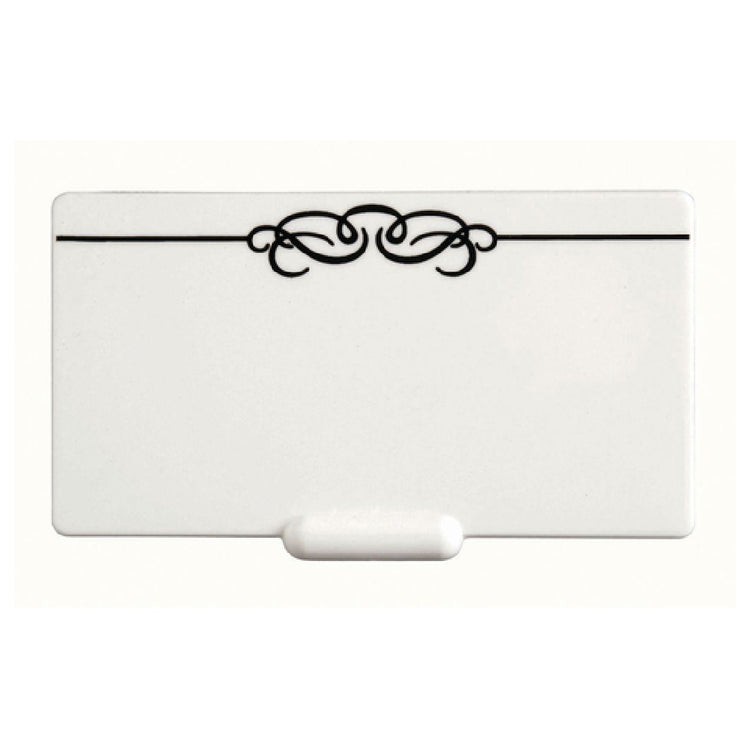 Hubert Company LLC, 45256, Tag, 3-1/2" x 2"H, rectangular, write-on/wipe-off, heat resistant up to 275°F, plastic, black scroll imprinted, white background
