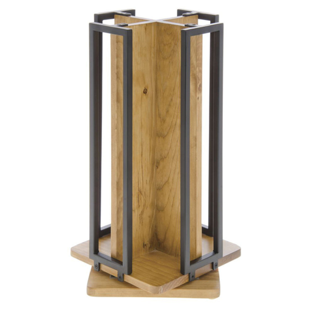 Hubert Company LLC, 63034, Cup & Lid Dispenser, 8-1/8" x 18-1/8"H, square, revolving, holds cups or lids up to 4" dia., black powder-coated metal frame, reclaimed wood