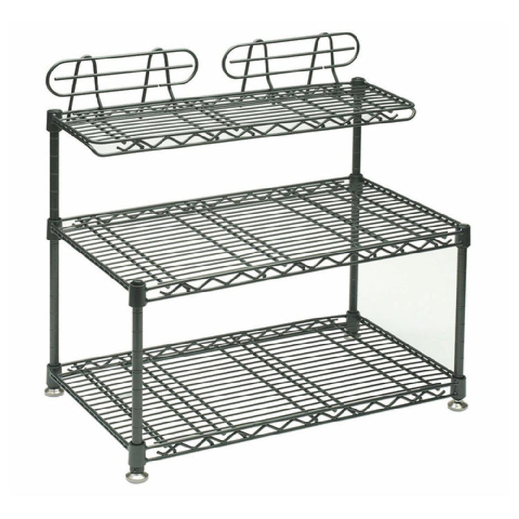 Hubert Company LLC, 63634, Display Shelf, wire, countertop, 3-tier, 19-1/2" x 11-1/2" x 19"H, rectangular, adjustable, epoxy-coating over zinc-plated steel, flint finish