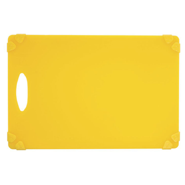 Hubert Company LLC, 71741, Cutting Board, 18" x 12" x 1/2"H, rectangular, embossed ruler (measures cm/in), corner grippers, cutout handle, dishwasher safe, polypropylene, yellow, NSF