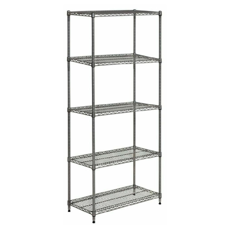 Hubert Company LLC, 73513, Shelf Unit, wire, 30"W x 14"D x 60"H, 900 lb. capacity (overall), (5) shelves, (4) posts & split sleeves, epoxy-coating over zinc-plated steel, flint finish (10 year limited warranty against corrosion and manufacturer defect)