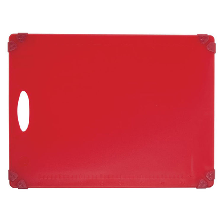 Hubert Company LLC, 94292, Cutting Board, 20" x 15" x 1/2"H, rectangular, embossed ruler (measures cm/in), corner grippers, cutout handle, dishwasher safe, polypropylene, red, NSF