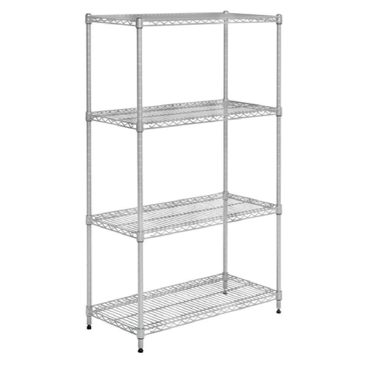 Hubert Company LLC, 99069, Shelving Unit, wire, light-duty, 30"W x 14"D x 48"H, 900 lb. max capacity, (4) shelves, (4) posts with leveler bolts & split sleeves, aluminum-plated steel, soft silver finish, NSF