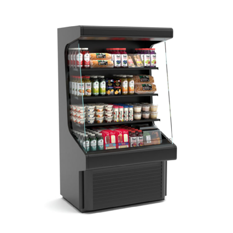 Hussmann, GSVM5272A-QS, (Quick Ship) microSC™ Open Vertical Merchandiser, self-service, 52" L x 30-5/8" D x 72" H, (2) 13" & (1) 15" shelves, canopy & shelf lighting, black bumper, black interior & exterior, self contained air-cooled refrigeration with rear air discharge, R290 refrigerant, 115v/60/1-ph, NEMA 5-15P