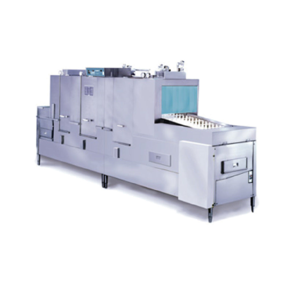 The Insinger CENTURY (17') Century Flight Type Dishwasher is a high-performance solution tailored for industrial kitchens and large-scale food service operations. This advanced dishwasher features a high-temperature wash system, ensuring superior sanitation and cleanliness for up to approximately 14,300 dishes per cycle. Measuring 17 feet in length with an approximately 26-inch wide conveyor, it is designed to handle substantial dishwashing demands efficiently. The innovative CrossFire® wash system enhances its cleaning capability, making it a formidable asset in busy environments where hygiene is paramount. Built with a sturdy stainless steel frame, legs, and feet, the dishwasher promises durability and longevity, even under constant use. The automatic tank fill feature simplifies operation, reducing manual effort and enhancing workflow efficiency. Available with electric immersion or steam injector tank heat options, this dishwasher provides versatility to suit varying energy preferences. The Insinger CENTURY (17') dishwasher is ideal for institutions, hotels, and large-scale catering businesses that require rapid and thorough cleaning cycles, providing an indispensable combination of capacity, reliability, and advanced technology for optimized dishwashing operations.