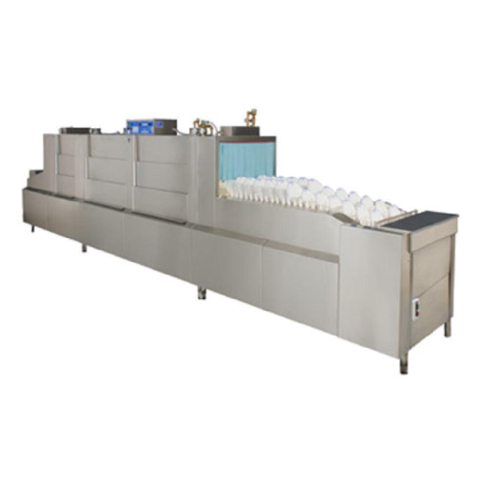 The Insinger RC-18 RPW-W Century Flight Type Dishwasher is a high-temperature dishwashing unit designed for optimal performance in demanding commercial environments. Featuring an approximately 26-inch wide conveyor and extending 18 feet in length, this dishwasher is engineered for high-volume operations with an impressive dish capacity of approximately 8,736. Utilizing the advanced CrossFire® wash system, it ensures thorough and efficient cleaning for large-scale operations. The dishwasher is equipped with an automatic tank fill feature, streamlining the setup process and reducing manual intervention. Constructed with a stainless steel frame, legs, and feet, it offers durability and stability, essential for continuous heavy-duty use. The heating options include electric immersion or steam injector tank heat, providing flexibility to meet various operational needs. This model is particularly suited for establishments such as large restaurants, hotels, and institutional kitchens that require consistent and reliable dishwashing capabilities. The combination of its substantial capacity, robust construction, and sophisticated wash system makes the Insinger RC-18 RPW-W a valuable asset for any large-scale food service operation seeking efficiency and reliability in their dishwashing process.