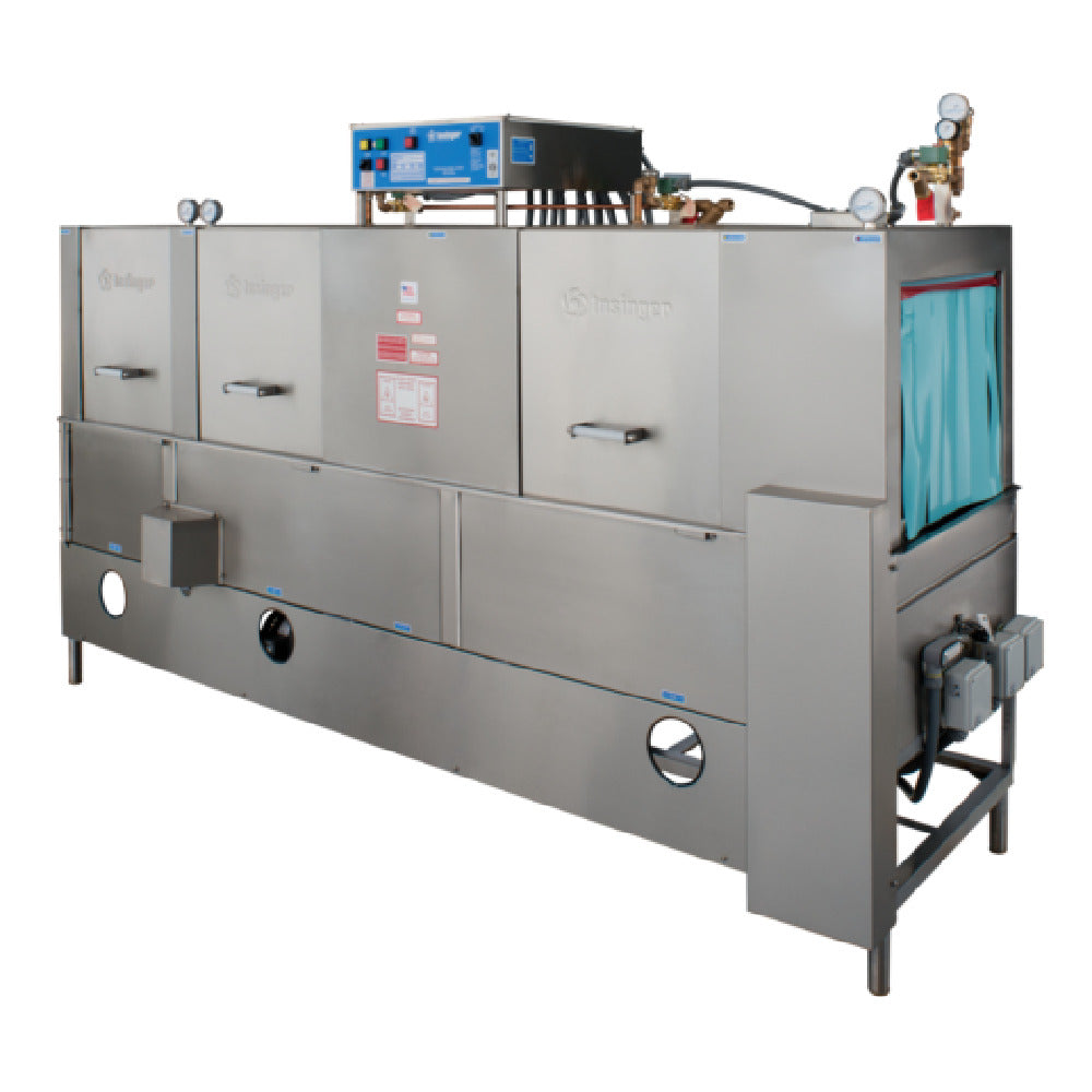 The Insinger SUPER 106-2 RPW Super Dishwasher is a conveyor-type, high-temperature machine engineered to enhance efficiency in commercial kitchens. Featuring a robust three-tank prewash, power wash, and rinse section, this dishwasher is designed for high-volume operations, with an impressive capacity to process approximately 330 racks per hour. Its exceptional CrossFire® wash system ensures thorough cleaning, making it a reliable choice for maintaining hygiene standards. Constructed with a stainless steel frame, legs, and feet, the Insinger SUPER 106-2 RPW guarantees durability and stability in demanding environments. Unlike models that require a booster, this dishwasher operates efficiently without one, offering versatility in electric immersion or steam injector tank heat options. This innovative design makes it a strategic investment for restaurants, hotels, and institutional kitchens that require consistent and effective dishwashing solutions. The machine's construction and technology cater to different segments within the food service industry, providing scalability and reliability for varied operational needs.