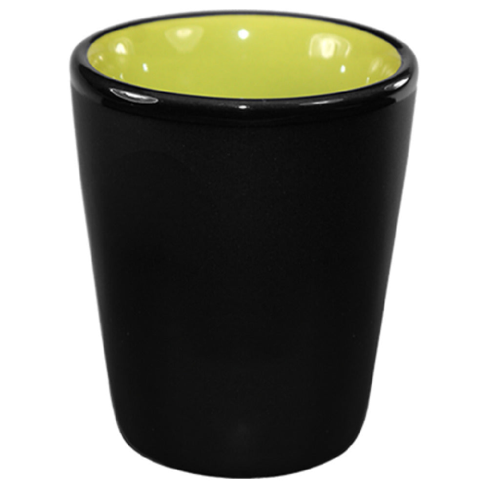 The International Tableware 81122-2902/05MF-05C Shot Cup is meticulously designed for versatility and durability within the food and beverage industry. This shot cup has a capacity of 1-1/2 oz., providing a perfect portion for serving spirits and other beverages. With dimensions of 2 inches in diameter and a height of 2-1/4 inches, it boasts a compact and practical design. Constructed from fully vitrified stoneware, it offers exceptional strength and resistance to daily wear and tear, ensuring longevity in various settings from lively bars to refined dining establishments. The shot cup is microwave and dishwasher safe, offering convenience and efficiency in food service operations. Its lead-free composition highlights its safety and compliance with health standards. The exterior features a sleek black matte finish, complemented by a distinctive rye green interior, embodying a modern aesthetic that enhances any table setting. The International Tableware Hilo® series, known for quality and style, includes this shot cup, which is packed efficiently with two dozen per case for bulk needs. This product's balance of form and function makes it an ideal choice for professional environments seeking reliable and attractive tableware solutions.