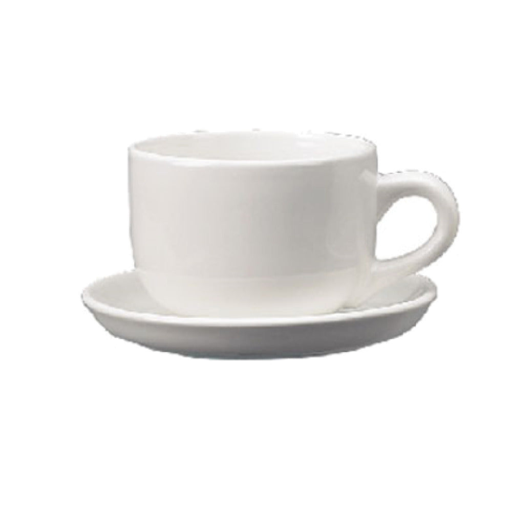The International Tableware 822-02 Latte Cup is a versatile and durable option, ideal for both commercial and home use. With a capacity of 14 oz., it is perfectly suited for serving lattes and other beverages, providing ample volume for a satisfying drink experience. The cup measures 4-1/4 inches in diameter and 3-1/8 inches in height, offering a comfortable size for handling and drinking. Its round shape, complemented by a convenient handle, ensures ease of use. Crafted from fully vitrified ceramic, this latte cup is built for strength and durability, making it a reliable choice for high-traffic environments. The microwave and dishwasher-safe design adds to its functionality, allowing for quick reheating and easy cleaning. Additionally, the cup is lead-free, ensuring safety for consumers. Its European White color, part of the Cancun™ collection, provides a stylish and classic look that fits seamlessly into various table settings. This product is packed by 2 dozen per case, catering to bulk purchase needs for businesses. Please note, the saucer is optional and shown for illustrative purposes. The International Tableware 822-02 Latte Cup is an excellent choice for cafes, restaurants, and households seeking reliable, safe, and stylish drinkware solutions.