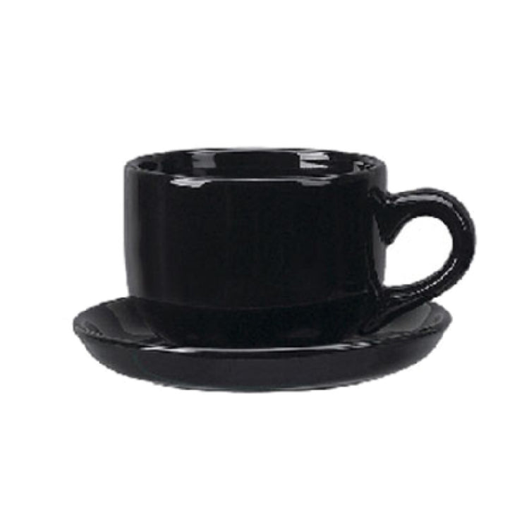 The International Tableware 822-05 Latte Cup is a meticulously crafted ceramic cup, designed to enhance the enjoyment of your favorite lattes. This robust cup boasts a generous capacity of 14 oz., providing ample space for your beverage. With dimensions of 4-1/4" in diameter and 3-1/8" in height, it presents a balanced and comfortable size for handling. The cup's round shape is complemented by an ergonomic handle, ensuring ease of use. Made from fully vitrified ceramic, it is both microwave and dishwasher safe, offering practicality and durability for everyday use. The lead-free composition underscores a commitment to safety, making this cup a reliable choice for health-conscious consumers. Available in a sleek black finish, the International Tableware 822-05 Latte Cup adds a touch of sophistication to any setting. Designed as part of the Cancun series, it pairs beautifully with optional saucers (sold separately), enhancing its versatility for both personal and commercial contexts. Packed by two dozen per case, this product is a practical solution for cafes, restaurants, and hospitality businesses looking to serve stylish and safe beverages to their patrons.