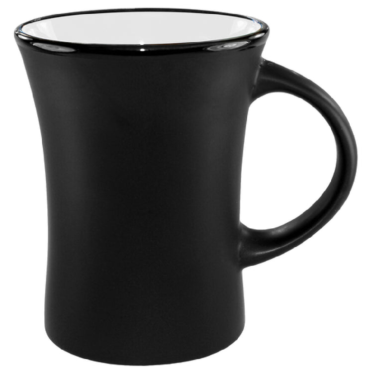 The International Tableware 83570-02/05MF-05C Venturi Mug, with a capacity of 9.5 oz and dimensions of 3-1/4" diameter by 4-1/8" height, is a meticulously designed piece of stoneware perfect for various market segments, including hospitality, retail, and home use. This round mug features a handle for comfortable use and is fully vitrified, ensuring durability and resistance to water absorption, which enhances longevity. Its striking black matte exterior coupled with a contrasting white interior makes it aesthetically pleasing, adding a touch of elegance to any table setting. The Venturi Mug's Hilo® design means it is microwave and dishwasher safe, providing convenience in fast-paced environments like cafes or restaurants. Additionally, it is lead-free, emphasizing safety for both consumers and the environment. Packed by the dozen, this mug is an economical choice for establishments requiring bulk purchasing. The Venturi Mug is ideal for serving hot beverages, showcasing International Tableware’s commitment to quality and functionality, making it a reliable choice for any professional setting that values stylish yet practical dinnerware solutions.