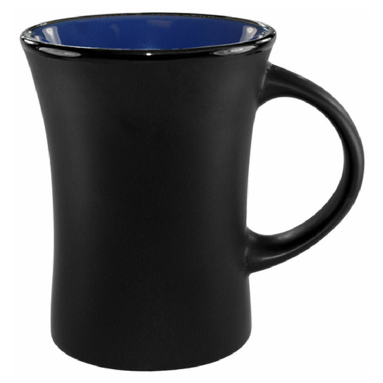The International Tableware 83570-2899/05MF-05C Venturi Mug is a meticulously designed drinkware, providing functionality and style. This mug boasts a capacity of 9.5 oz., perfectly catering to various beverage preferences. With dimensions measuring 3-1/4" in diameter and 4-1/8" in height, it maintains a compact profile suitable for a wide array of settings. The round mug is enhanced with a convenient handle, ensuring ease of use and comfort. Constructed from fully vitrified stoneware, it promises superior durability and resilience, while being lead-free for added safety. The mug's black matte exterior elegantly contrasts with the charming country blue interior, offering a visually appealing aesthetic. Additionally, it is both microwave and dishwasher safe, providing versatility and ease of maintenance in busy environments. Packed in dozens, the Venturi Mug supports efficient inventory management. Its attributes make it an ideal choice for diverse market segments, ranging from casual dining to hospitality venues, where durability and style are paramount. The Venturi Mug is part of the Hilo® collection, aligning with industry standards for quality and design. Its combination of robust material and attractive appearance underscores its unique value proposition, catering to both functional and aesthetic needs in professional settings.