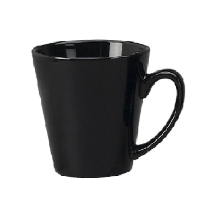 International Tableware 839-05 Funnel Cup 12 Oz. is an exquisitely designed ceramic cup with dimensions of 3-5/8 inches in diameter and 3-7/8 inches in height, featuring a robust round structure complemented by a convenient handle. This fully vitrified product ensures durability and resistance to moisture absorption, making it a reliable option for various settings. Its microwave and dishwasher safe attributes allow for versatile use and easy maintenance in fast-paced environments. The lead-free composition highlights its safe use, adhering to health standards. Crafted in a striking black Cancun finish, the cup adds an elegant touch to any table setting. Packed by 3 dozen per case, it caters efficiently to the demands of hospitality sectors, including restaurants, cafes, and hotels, that require both style and functionality in their service ware. The International Tableware 839-05 Funnel Cup is engineered to enhance the beverage service experience, making it an essential choice for businesses aiming to balance aesthetic appeal with practical utility.