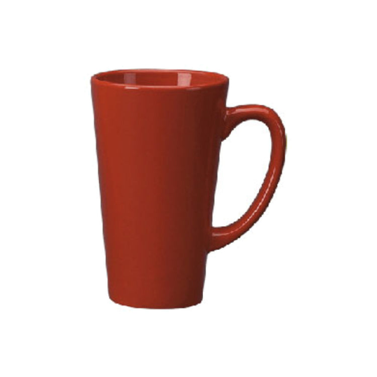 The International Tableware 867-2194 Funnel Cup 16 Oz. 3-1/2" Dia. X 5-7/8"H is a meticulously crafted crimson red ceramic cup, distinguished by its fully vitrified construction. This feature ensures enhanced durability and resistance to chipping, making it an excellent choice for both high-traffic commercial settings and home use. With a generous capacity of 16 ounces, it caters to a variety of beverage needs, from coffee and tea to more creative culinary applications. The cup's dimensions of 3-1/2" in diameter and 5-7/8" in height provide a balanced design that is both aesthetically pleasing and functional. Its ergonomic handle design further enhances user comfort. Notably, this cup is both microwave and dishwasher safe, offering convenience and ease of use in fast-paced environments. The lead-free composition underscores its commitment to health and safety standards, making it suitable for establishments that prioritize customer well-being. Packed in cases of two dozen, it is an ideal solution for restaurants and cafes looking to maintain a consistent aesthetic with reliable performance. The Cancun™ line's vibrant color and sturdy build make the International Tableware 867-2194 Funnel Cup a versatile and enduring choice for diverse market segments in the food service industry.