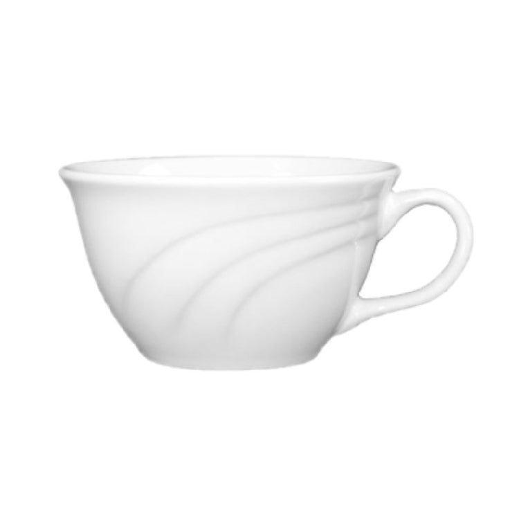 International Tableware AM-23 Tea Cup Low 6 Oz. is a meticulously crafted porcelain tea cup designed for both functional use and aesthetic appeal. This round tea cup, with a capacity of 6 ounces, features a diameter of 3-5/8 inches and a height of 2-1/8 inches, providing a comfortable size for enjoying hot beverages. It includes a sturdy handle and a rolled edge that enhances its durability and user experience. Made from fully vitrified porcelain, this tea cup is both microwave and dishwasher safe, offering convenience and ease of use in various settings. It is lead-free, ensuring safety and quality for consumers. The tea cup’s bright white color, referred to as Bright White, adds a classic and elegant touch, making it suitable for diverse environments, from casual dining to upscale restaurant settings. The embossed design enhances its visual appeal, contributing to a sophisticated table presentation. The AM-23 model is part of the Amsterdam™ line, underscoring its association with high-quality standards. Packed by one dozen, it serves as a practical choice for businesses in the hospitality industry, such as cafes and hotels, as well as for home use by individuals who appreciate fine tableware.
