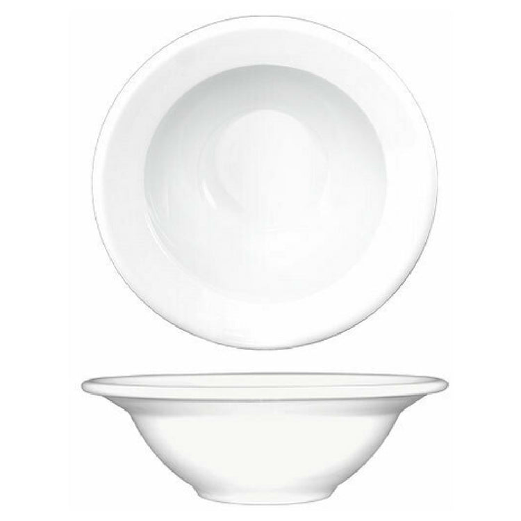 The International Tableware BL-10 Grapefruit Bowl is an expertly crafted piece designed to meet the needs of diverse market segments within the food service industry. This bowl, with a capacity of 11 ounces, measures 7 inches in diameter and stands 2-1/4 inches high, making it an ideal choice for serving grapefruit and other similar-sized dishes with elegance and precision. Its round shape and rolled edge add a touch of sophistication, while the bowl's fully vitrified porcelain construction ensures durability and resilience. This bowl is both microwave and dishwasher safe, offering convenience and ease of use in fast-paced environments. The lead-free composition guarantees safety for all users, aligning with contemporary health standards. Presented in a bright white finish, the bowl complements a wide range of table settings and decors, providing versatility across various dining experiences. Packaged in cases of three dozen, this product is perfect for establishments seeking both style and practicality in their tableware selections. The International Tableware BL-10 Grapefruit Bowl is a testament to quality and functionality, serving as a reliable and attractive option for restaurants, hotels, and catering services looking to enhance their dining presentations.