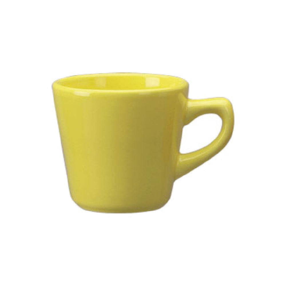 International Tableware CA-1-Y Cup Tall 7 Oz. is a versatile ceramic cup, designed with precision to meet various industry needs. With a capacity of 7 ounces, it stands at 3 inches in height and has a diameter of 3-1/4 inches, making it an ideal choice for serving beverages in cafes, restaurants, and hospitality settings. This cup features a round shape and is equipped with a convenient handle, enhancing its usability and comfort. The rolled edge adds a touch of elegance while ensuring durability during frequent use. The CA-1-Y Cup is both microwave and dishwasher safe, providing ease of use and efficient cleaning for busy service environments. Crafted from lead-free ceramic, it meets safety standards and assures quality in every use. Its vibrant yellow hue, part of the Cancun™ line, brings a pop of color to any table setting, making it attractive for businesses looking to add a cheerful aesthetic to their service. Packed by 3 dozen per case, it is a practical choice for bulk purchases, catering efficiently to high-volume establishments. This cup's combination of durability, functionality, and visual appeal makes it a valuable asset across various market segments within the food and beverage industry.