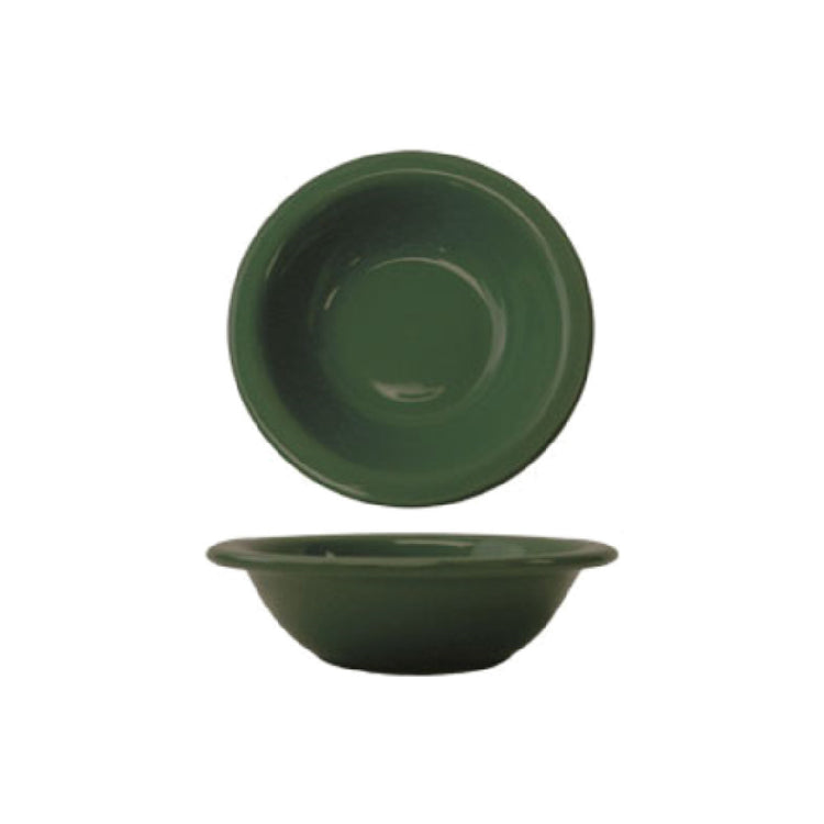 The International Tableware CA-10-G Grapefruit Bowl, with a capacity of 13 oz., is a versatile addition to any culinary setting, measuring 6-5/8" in diameter by 1-3/4" in height. Crafted from lead-free ceramic, this bowl combines practicality with safety, ensuring a toxin-free dining experience. Its round design is accentuated by a rolled edge, offering a contemporary look that complements various table settings. The grapefruit bowl is both microwave and dishwasher safe, providing ease of use and maintenance for busy kitchens. Available in a vibrant green hue, part of the Cancun™ collection, it adds a splash of color to dining presentations, enhancing the visual appeal of served dishes. Each case contains three dozen bowls, catering to large-scale dining establishments such as restaurants, hotels, and catering services. This product's durable construction and stylish design make it an ideal choice for numerous segments within the foodservice industry, delivering both aesthetic and functional value. Whether used for serving grapefruit, desserts, or small salads, the International Tableware CA-10-G Grapefruit Bowl is a reliable and attractive option for diverse culinary applications.