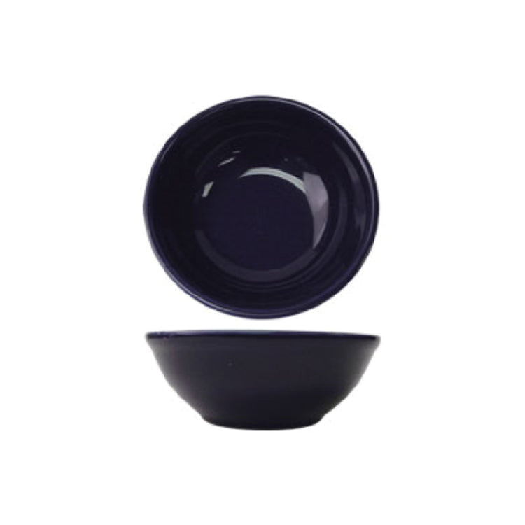The International Tableware CA-15-CB Oatmeal/Nappie Bowl 13 Oz. 5-5/8" Dia. X 2-1/4" H is a versatile and practical addition to any food service setting. Crafted from ceramic, this bowl is designed with a rolled edge, offering a blend of aesthetic appeal and durability. Its 13-ounce capacity makes it suitable for serving oatmeal, soups, and a variety of side dishes. This bowl is microwave and dishwasher safe, providing convenience in both preparation and cleaning, essential for fast-paced restaurant environments. The cobalt blue color from the Cancun series adds a distinctive and vibrant touch to table settings, enhancing visual presentation in cafés and hotels. Lead-free and safe for daily use, this bowl meets safety standards while maintaining an attractive design. Measuring 5-5/8 inches in diameter and 2-1/4 inches in height, it is compact yet functional, allowing for efficient storage and stacking when not in use. Packed by three dozen per case, it is an economical choice for businesses looking to equip their dining areas with quality tableware. The International Tableware CA-15-CB bowl is an excellent choice for establishments prioritizing style, safety, and practicality in their tableware selection.