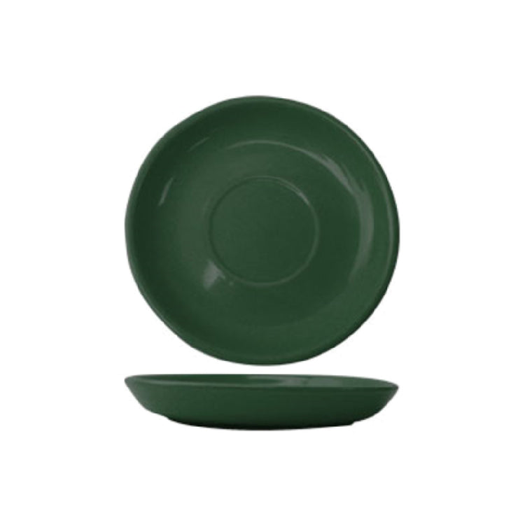 The International Tableware CA-2-G Saucer 6" Dia. Round is a meticulously crafted ceramic saucer, perfectly designed for both functionality and style in various dining settings. With a diameter of 6 inches, this round saucer is ideally suited for accommodating cups or small dishes, making it a versatile addition to any tableware collection. Made from lead-free ceramic, it guarantees safety and durability, essential for both home and commercial use. The saucer is available in a distinct green color, part of the Cancun™ collection, adding a touch of elegance and vibrancy to dining tables. Its microwave and dishwasher-safe features ensure that it meets the needs of busy environments, providing easy maintenance and versatility in heating. This product is packed by 3 dozen per case, catering to the demands of large-scale operations like restaurants, cafes, and hotels. The unique combination of practicality and aesthetic appeal makes the International Tableware CA-2-G Saucer a preferred choice for hospitality professionals seeking reliable and stylish tableware solutions. Its lead-free composition and color consistency ensure long-lasting use and customer satisfaction, making it an exemplary product in the tableware industry.
