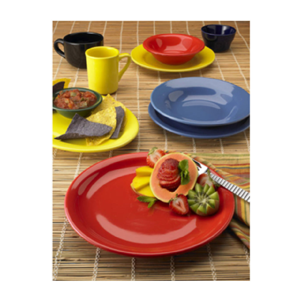 The International Tableware CA-6-O Plate 6-5/8" Dia. Round is an expertly crafted ceramic dish, offering a versatile and vibrant addition to any dining setting. With a diameter of 6-5/8 inches, this round plate features a wide rim and a rolled edge, ensuring both durability and an elegant presentation. It is designed to be microwave and dishwasher safe, providing convenience for both commercial and residential use. The plate's lead-free composition underscores its commitment to safety and quality, making it a reliable choice for health-conscious settings. Available in a striking orange color, known as Cancun™, this plate adds a bold splash of color to any tableware collection. The International Tableware CA-6-O Plate is packed by three dozen per case, making it an efficient option for restaurants, catering services, and hospitality businesses requiring bulk orders. Its unique combination of functionality, safety, and aesthetic appeal makes it a valuable asset across various industry segments, including food service, hospitality, and home dining. Whether used for casual gatherings or formal events, this plate stands out for its practicality and eye-catching design.