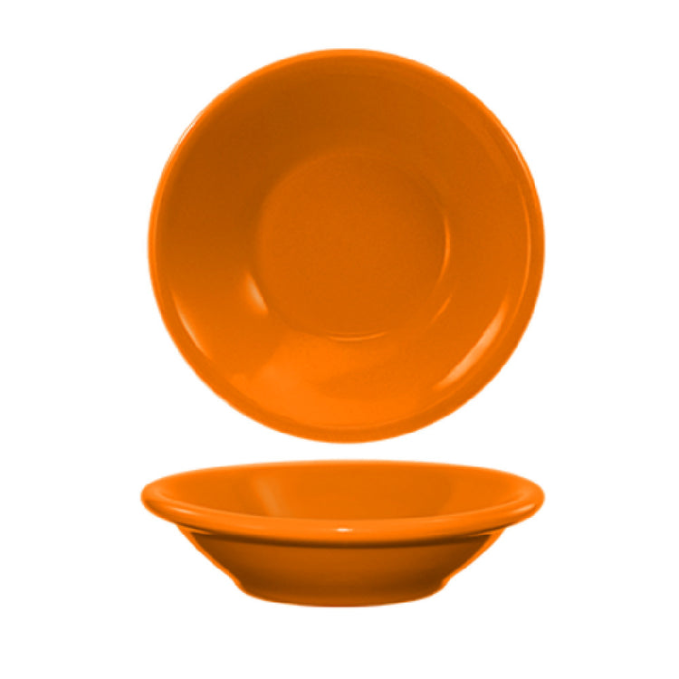 The International Tableware CAN-11-O Fruit Bowl is a finely crafted ceramic piece designed to enhance both aesthetic appeal and functionality. With a capacity of 5 ounces, this fruit bowl is perfect for serving small portions of fresh fruits or desserts. The bowl features a diameter of 4-3/4 inches and a height of 1-1/4 inches, offering a compact yet practical size that fits seamlessly into any table setting. Its round, fully vitrified construction ensures durability and resistance to chipping, making it an ideal choice for both commercial and residential use. The vibrant orange color, part of the Cancun™ collection, adds a splash of color that can brighten any dining experience, making it particularly attractive for theme restaurants, cafes, and catering services. Packed by 3 dozen per case, this bowl is tailored to meet the needs of businesses that require substantial quantities without compromising on quality. The International Tableware CAN-11-O Fruit Bowl stands out for its blend of robust construction and striking design, catering to a variety of market segments, from casual dining venues looking to add a touch of vibrancy to their tableware collection to upscale eateries that value both form and function in their service presentation.