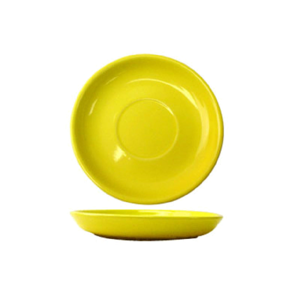 The International Tableware CAN-2-Y Saucer 5-1/2" Dia. Round is a versatile and sophisticated piece of ceramic tableware, designed to enhance dining experiences across various industry segments. With a diameter of 5-1/2 inches, this saucer is perfectly sized to complement cups and mugs, specifically tailored for models CA-1, CA-23, 822, 839, and 87241. Its round shape with a narrow rim and rolled edge provides a classic and elegant aesthetic, while its fully vitrified construction ensures durability and a non-porous surface, making it suitable for commercial use. The saucer is both microwave and dishwasher safe, offering convenience and ease of maintenance, crucial for fast-paced commercial environments. Being lead-free, it prioritizes safety and health standards, aligning with modern industry requirements. The vibrant yellow color, part of the Cancun collection, adds a pop of color to any table setting, appealing to establishments aiming for a lively and inviting atmosphere. Packed efficiently with 3 dozen per case, it supports cost-effective inventory management for larger operations. This saucer is an ideal choice for restaurants, cafes, and catering services seeking reliable and aesthetically pleasing tableware that meets both functional and safety standards in a busy service setting.