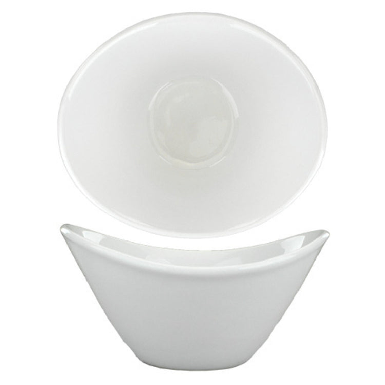The International Tableware DO-910 Bowl 7 Oz. 5" X 4-3/8" X 2-1/2"H is a versatile porcelain dish that meets the demands of various culinary markets. This oval-shaped bowl features a rolled edge, contributing to its stylish and functional design. Fully vitrified, the bowl ensures durability and resistance to chipping, making it suitable for professional kitchen environments. Its European White color, part of the Dover series, offers a classic and elegant appearance that fits seamlessly into any dining setting. This 7-ounce bowl is both microwave and dishwasher safe, providing convenience for food service operations where efficiency is paramount. Additionally, being lead free enhances its safety profile, aligning with health standards across the industry. The dimensions - 5 inches by 4-3/8 inches by 2-1/2 inches in height - make it ideal for serving small portions or appetizers. Packed by 3 dozen per case, the International Tableware DO-910 Bowl is a practical choice for restaurants, catering services, and hospitality venues that require reliable and aesthetically pleasing dinnerware. Its combination of style, safety, and functionality makes it a valuable asset in any professional setting.