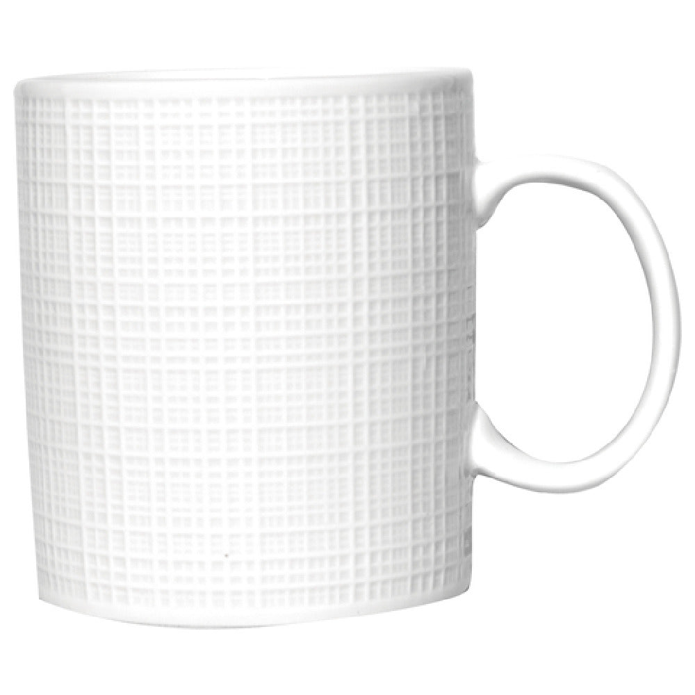 The International Tableware DR-68 Mug 11 oz. is a meticulously crafted porcelain product designed to cater to diverse market segments within the food and beverage industry. With dimensions of 3-1/8" diameter and 3-5/8" height, this round mug, featuring a sturdy handle and distinctive basket-weave design, combines functionality with aesthetic appeal. The mug's Bright White Dresden™ porcelain construction ensures durability and elegance, making it a versatile choice for both casual dining and upscale environments. Sold in cases of 2 dozen, the DR-68 Mug is ideal for restaurants, cafes, catering services, and hospitality businesses seeking a reliable and stylish beverage solution. Its standard 11 oz. capacity is perfect for serving a variety of hot beverages, providing consistency and satisfaction to customers. The DR-68 Mug stands out in its category due to its timeless design and practical proportions, offering a unique value proposition by seamlessly blending traditional craftsmanship with modern needs. Its practical size and robust construction make it suitable for frequent use in high-volume settings, while its elegant appearance enhances any table setting, appealing to both everyday users and connoisseurs of fine dining experiences.