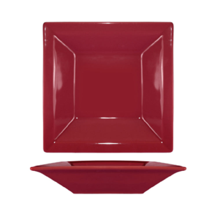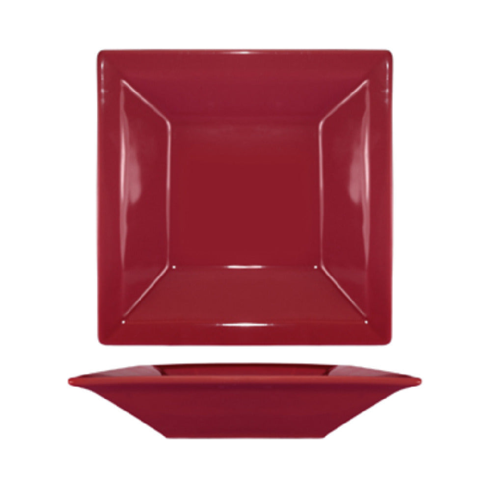 The International Tableware EL-12-RH Pasta/Soup bowl is a versatile and durable dining essential, measuring 7 x 7 x 1-1/2 inches with a 13-ounce capacity. This square porcelain item is fully vitrified, ensuring its strength and resistance to water absorption, which is crucial for maintaining hygiene and longevity in demanding food service environments. The EL-12-RH model is both microwave and dishwasher safe, highlighting its convenience for busy kitchens where efficiency and ease of cleaning are paramount. Its lead-free composition guarantees safety and compliance with health standards, making it a reliable choice for institutions prioritizing customer well-being. The bowl's rhubarb hue from the Elite Harvest collection adds a touch of elegance and uniqueness to table settings, appealing to upscale dining establishments and catering services aiming to impress with distinctive presentation. Offered in packs of two dozen per case, this product caters to high-volume requirements, making it an ideal selection for restaurants, cafes, and catering companies seeking durable, attractive, and practical tableware solutions to enhance their service capabilities and aesthetic appeal.