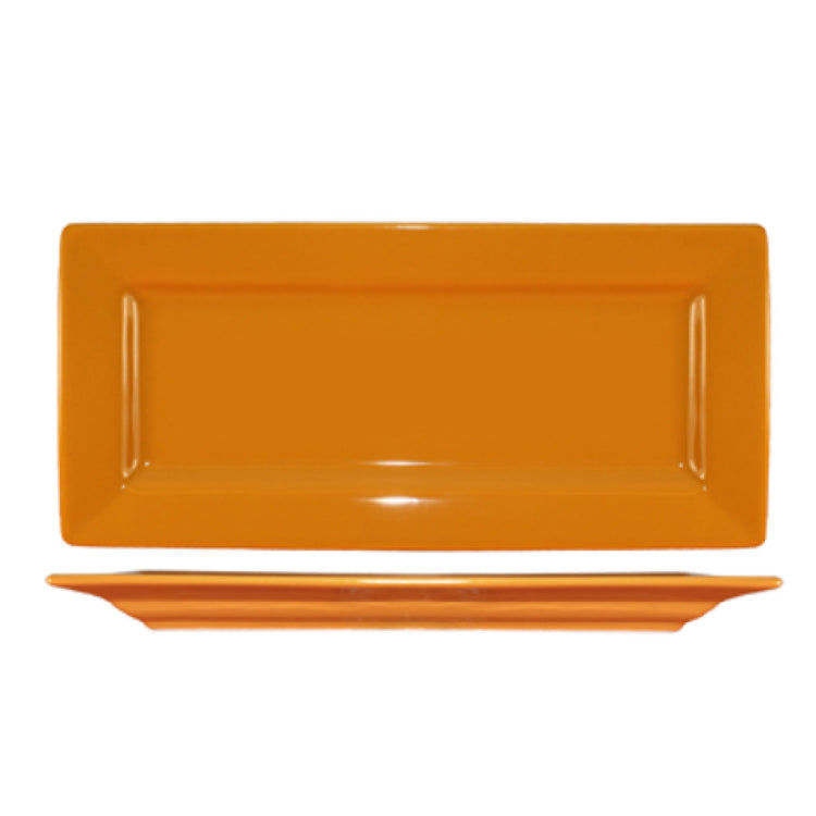 The International Tableware EL-17-BN Platter is a sophisticated rectangular serving piece measuring 11 inches by 5-1/8 inches, designed with a wide rim and rolled edge for enhanced durability and aesthetic appeal. Crafted from fully vitrified porcelain, this platter exemplifies strength and resilience, making it both microwave and dishwasher safe, catering to the needs of busy commercial environments. Its elegant butternut color, part of the Elite Harvest collection, provides a warm and inviting presentation, ideal for upscale dining establishments looking to elevate their service style. Importantly, the platter is lead-free, ensuring safety and quality in food presentation, a crucial consideration for any health-conscious operation. This platter is shipped in a convenient package of one dozen, making it an efficient option for restaurants and catering services that require consistency and reliability in their tableware inventory. Its combination of design, functionality, and safety makes the International Tableware EL-17-BN Platter a versatile choice for a range of market segments within the hospitality industry, from high-end restaurants to casual dining, delivering both style and practicality in one complete package.