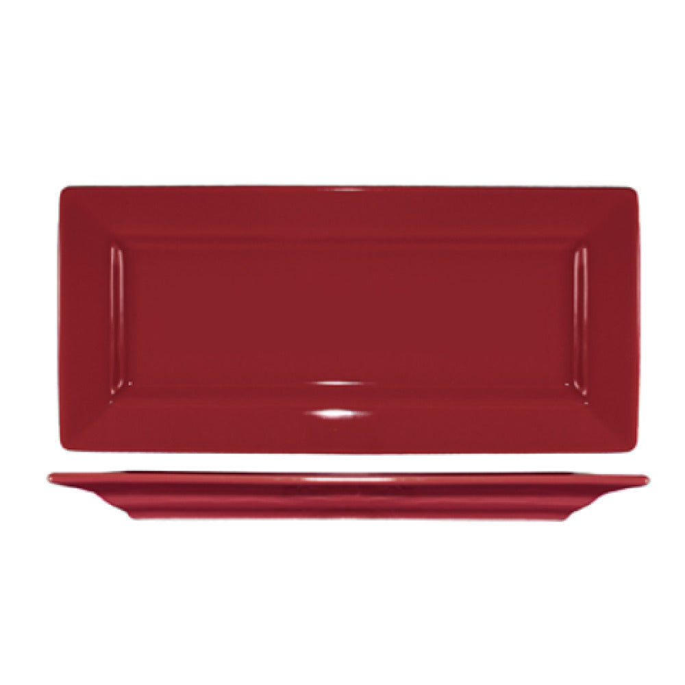 The International Tableware EL-17-RH Platter 11" X 5-1/8" Rectangular is a meticulously crafted porcelain platter designed to meet high standards in both functionality and aesthetics. Measuring 11 inches by 5-1/8 inches, this platter features a rectangular shape complemented by a wide rim and rolled edge, providing an elegant look while ensuring durability. Fully vitrified, it offers enhanced strength and resistance to water absorption, making it ideal for efficient use in various culinary settings. This platter is microwave and dishwasher safe, highlighting its convenience and adaptability in fast-paced environments such as restaurants, catering services, and hospitality venues. Its lead-free composition ensures safe food service, aligning with health standards for professional kitchens. The platter is part of the Elite Harvest™ collection, presented in a distinctive rhubarb color that adds a touch of sophistication to table settings. This product is packed by the dozen, making it a practical choice for establishments requiring premium quality tableware in larger quantities. The International Tableware EL-17-RH Platter combines functionality with style, making it a versatile addition to the diverse needs of the food service industry.
