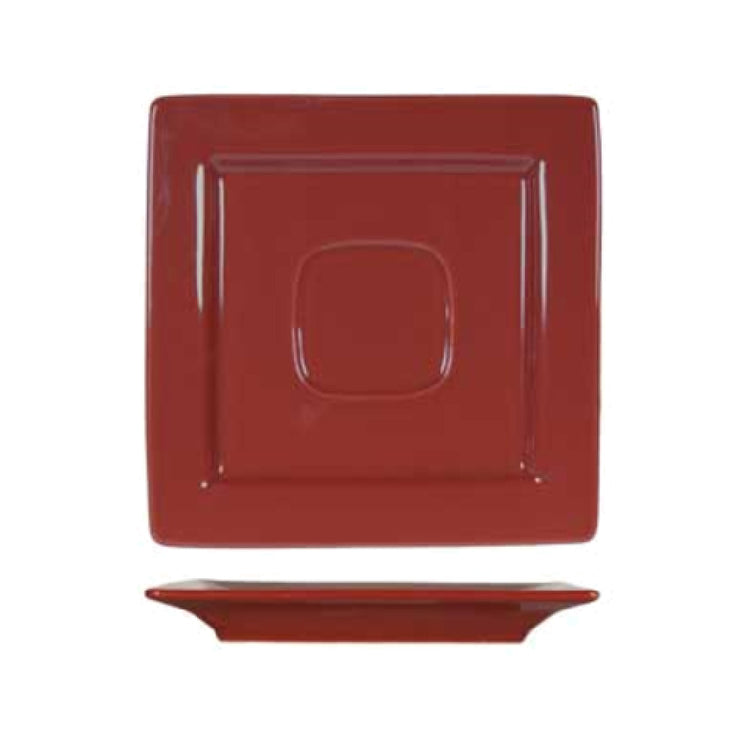 The International Tableware EL-2-RH Saucer 5-7/8" x 5-7/8" Square is an essential piece of tableware designed with a modern aesthetic, perfect for both commercial and residential dining settings. This saucer features a unique square shape with a wide rim and rolled edge, complete with a well ring to securely hold the matching cup, enhancing the dining experience. Its fully vitrified construction ensures durability and resistance to chipping, making it ideal for high-volume use in bustling cafes and restaurants. The saucer is lead-free, ensuring safety and compliance with health standards, while its microwave and dishwasher safe properties offer convenience and ease of use in fast-paced environments. Crafted from quality porcelain in a distinctive rhubarb color as part of the Elite Harvest™ collection, the EL-2-RH saucer adds a touch of elegance to any table setting. Specifically designed to pair with the EL-1-RH cup, it is packed efficiently in cases of three dozen, providing a practical solution for large-scale operations in the hospitality industry. This versatile saucer is a perfect fit for establishments looking to combine style, durability, and functionality in their tableware selection.