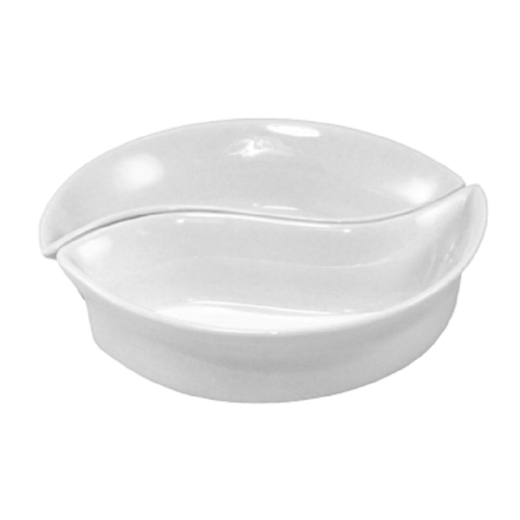 The International Tableware FA-433 Sampling Dish is a high-quality porcelain dish designed for various culinary applications. With a capacity of 1-1/2 oz. and a diameter of 4-1/4 inches, this pisces-shaped dish provides an ideal size for sampling and presenting small portions. Crafted from fully vitrified porcelain, it ensures durability and resistance to chipping, making it suitable for both casual and formal dining environments. The Bright White finish adds a touch of elegance, enhancing food presentation. This dish is both microwave and dishwasher safe, providing convenience and versatility in any kitchen setting. Additionally, it is lead-free, aligning with modern safety standards for kitchenware. Each dish is sold separately, and they are packed in cases of two dozen, making it a practical choice for restaurants, catering businesses, and hospitality venues looking to maintain consistent quality and aesthetics in their tableware collections.