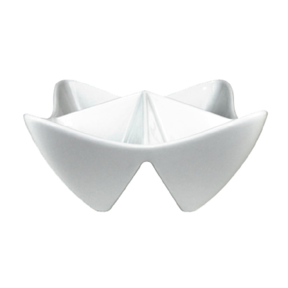 The International Tableware FA-65 Bowl 7 Oz. Wells 6-3/4" X 6-3/4" X 4-1/4"H is a meticulously crafted porcelain bowl designed for both functionality and aesthetic appeal. This bowl features four distinct compartments, providing a versatile serving solution that suits a variety of settings, from upscale dining establishments to casual eateries. Its fully vitrified porcelain construction ensures durability and resilience, making it microwave and dishwasher safe, a crucial benefit for fast-paced commercial environments. The bowl's bright white finish adds a touch of elegance, enhancing the presentation of culinary creations. Lead-free, this product guarantees safety, adhering to stringent health standards. Measuring 6-3/4" by 6-3/4" with a height of 4-1/4", it offers a compact yet spacious design, ideal for serving individual portions or sharing dishes. Its 7 oz. capacity is perfect for appetizers, side dishes, or desserts. Packed by the dozen, this bowl is a practical choice for businesses requiring bulk quantities without compromising on quality or style. With its superior design and functional attributes, the International Tableware FA-65 Bowl meets the diverse needs of various market segments within the foodservice industry, providing both efficiency and elegance in food presentation.