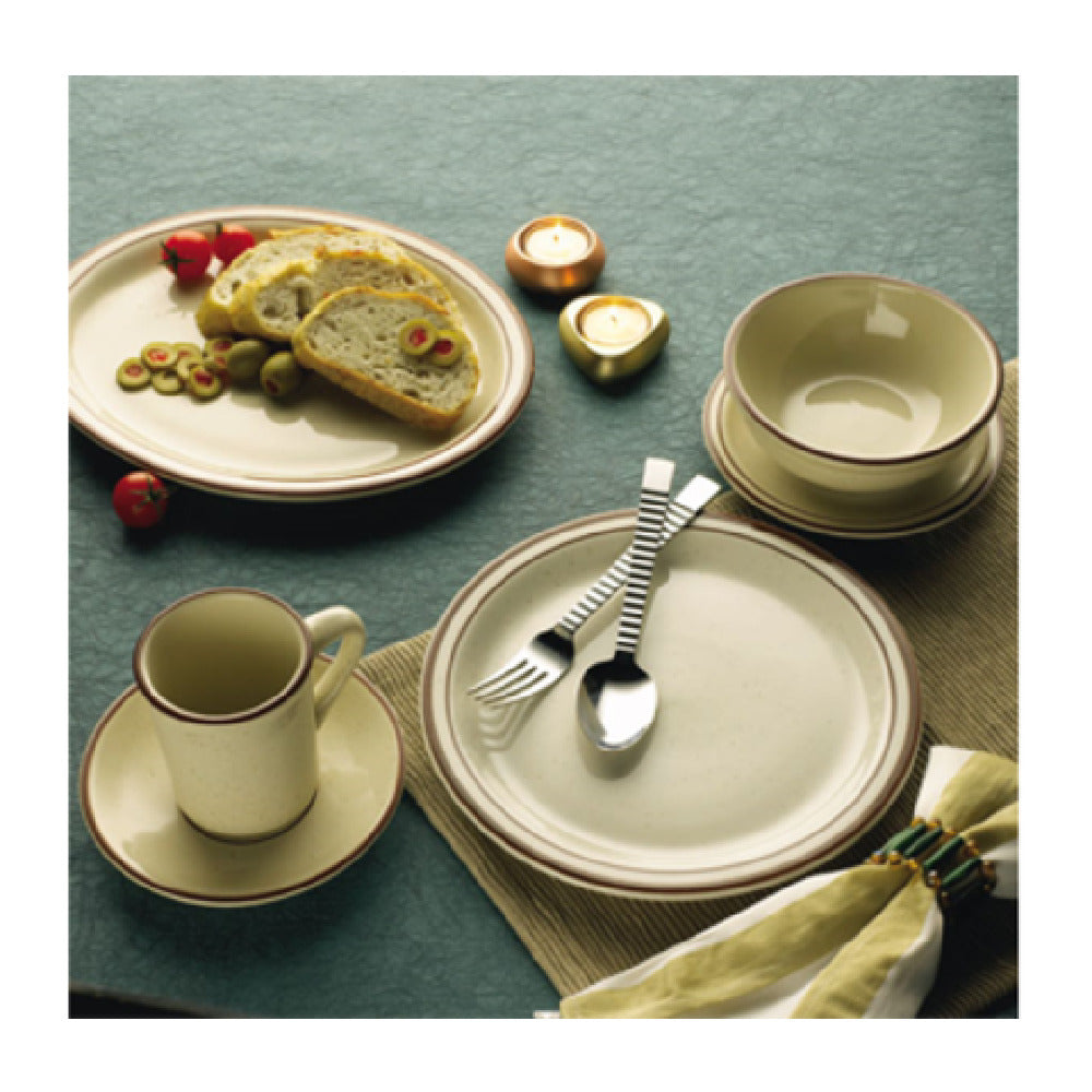 The International Tableware GR-3 Soup Bowl is a versatile piece designed for various dining environments, offering a capacity of 10 ounces, making it perfect for serving individual portions of soup or stew. With a diameter of 8-7/8 inches and a height of 1-5/8 inches, it strikes a balance between generous serving size and tabletop efficiency. The bowl's round shape and deep rim enhance its practicality, minimizing spills while maximizing presentation. Manufactured from high-quality ceramic, this bowl is both microwave and dishwasher safe, ensuring ease of use and maintenance in busy food service settings. The lead-free construction underscores its safety for everyday dining. The bowl's aesthetic appeal is highlighted by its American White color, accented with a distinctive brown speckle and rim, embodying the Granada™ style that suits both casual and formal settings. Packed by two dozen per case, the International Tableware GR-3 Soup Bowl is an excellent choice for restaurants, catering services, and hospitality venues that seek to combine durability with a touch of elegance. Its thoughtful design and reliable construction make it a valuable addition to any food service operation aiming to enhance their tableware collection with functionality and style.